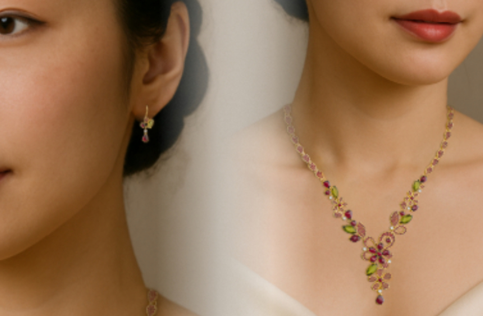 Soupravu navrženou a zhotovenou pro EXPO 2025 tvoří náhrdelník a náušnice ze žlutého zlata o ryzosti 585/1000, osazené dvěma výjimečnými kameny s českým původem. Dominantní je český granát – jedinečný svou sytě rudou barvou a historickou hodnotou, který doplňuje zelený vltavín, přírodní sklo meteoritického původu. Třetím prvkem je diamant – kámen, který šperkům zdůrazňuje jejich výjimečnost.
