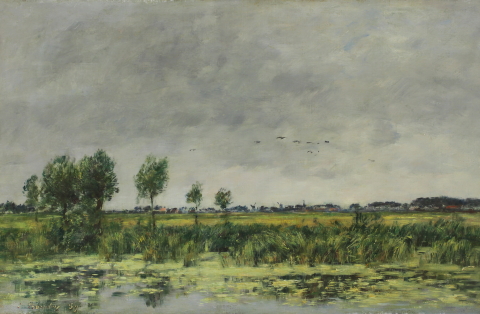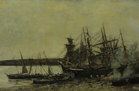 Eugène Boudin (1824 Honfleur – 1898 Deauville) je považován za předchůdce impresionismu. Tento francouzský malíř byl jedním z prvních krajinářů, který maloval přímo v přírodě. Svěžími barvami a lehkou štětcovou malbou zachytil ve svých obrazech živost i světlo přímořské oblohy plné mraků nejrůznějších tvarů, pestrost moře, pasoucí se stáda dobytka, ale i poklidnou atmosféru francouzského přístavního města. Boudinova díla přenáší diváka na řadu míst, včetně jeho rodné Normandie. Autorův přístup k malbě byl inspirací mladému Claudu Monetovi (1840 Paříž – 1926 Giverny) a nakonec vedl ke zrodu nového uměleckého směru – impresionismu.