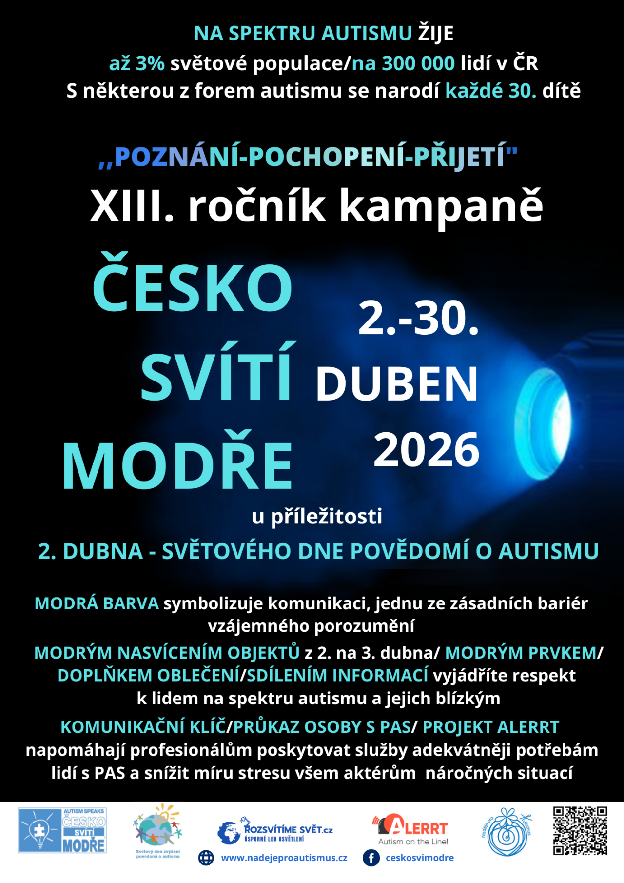Letošní ročník kampaně nese motto „POZNÁNÍ – POCHOPENÍ – PŘIJETÍ“, které zdůrazňuje důležitost informovanosti a porozumění jako klíčových kroků k přijetí odlišnosti lidí s autismem ve společnosti.