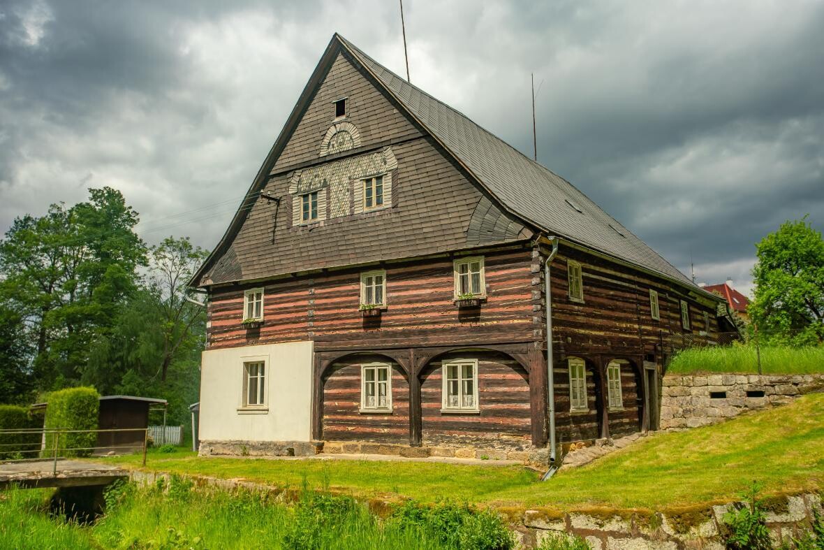 Kočvarův mlýn pocházející z roku 1799 je převážně roubený ležící na půdorysu písmene L.