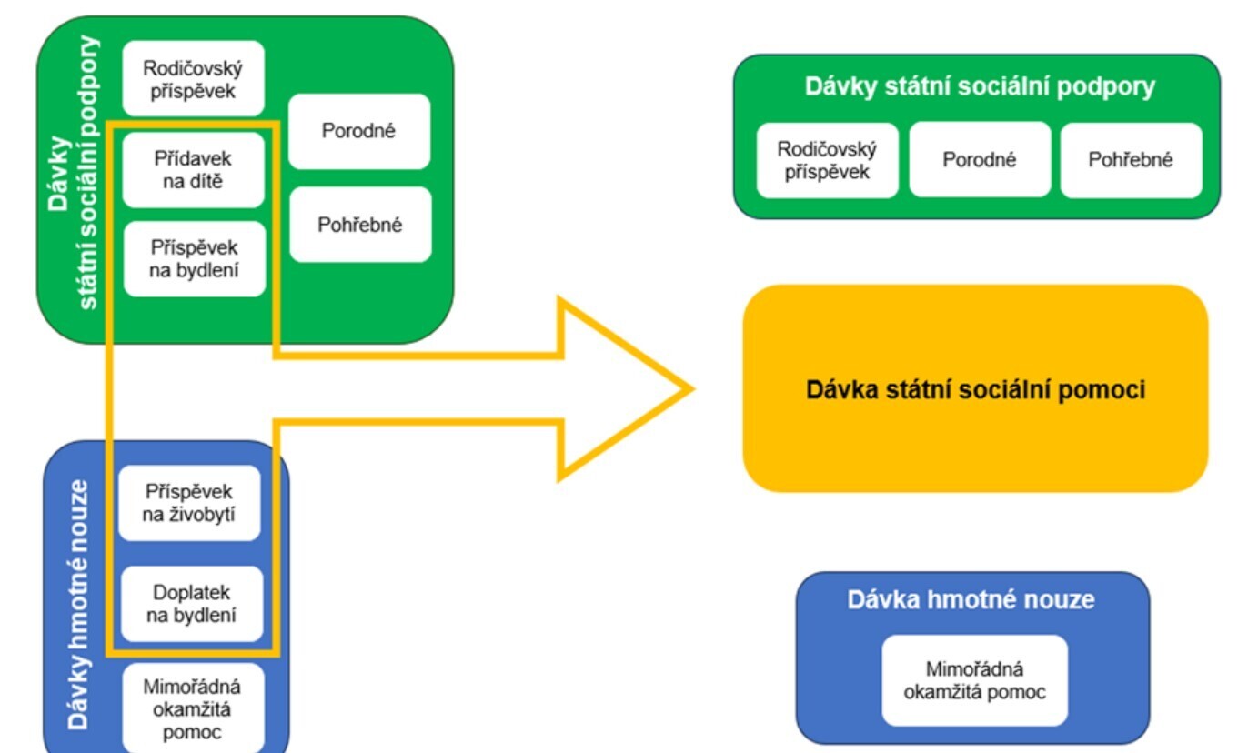 Od 1. 10. 2025 nahradila některé stávající dávky (příspěvek na bydlení, příspěvek na živobytí, doplatek na bydlení a přídavek na dítě) nová „dávka státní sociální pomoci“, tzv. „superdávka“. Tato dávka má pomoci lidem s nízkými příjmy pomáhat zvládat základní životní náklady - bydlení, živobytí a péči o děti. Žadatel tak nově podává jednu žádost, která se vyhodnocuje komplexně podle jeho příjmů, majetkových poměrů a životní situace. O superdávce rozhoduje Úřad práce České republiky.