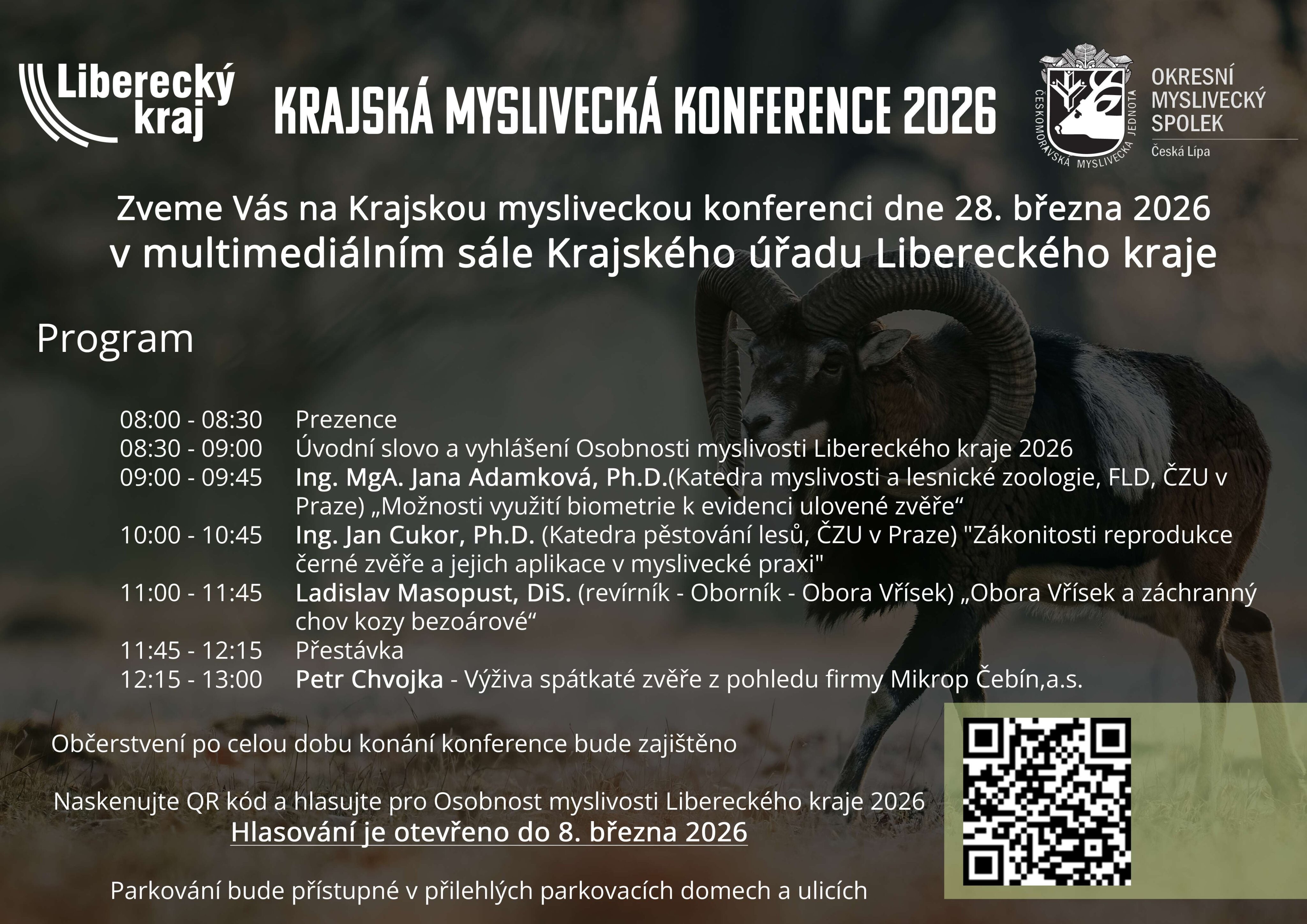 Letošní mysliveckou konferenci pořádá OMS Česká Lípa za podpory Libereckého kraje. Konference se koná v sobotu 28. března 2026 v multimediálním sálu krajského úřadu. Součástí je i anketa Osobnost myslivosti Libereckého kraje v roce 2026.